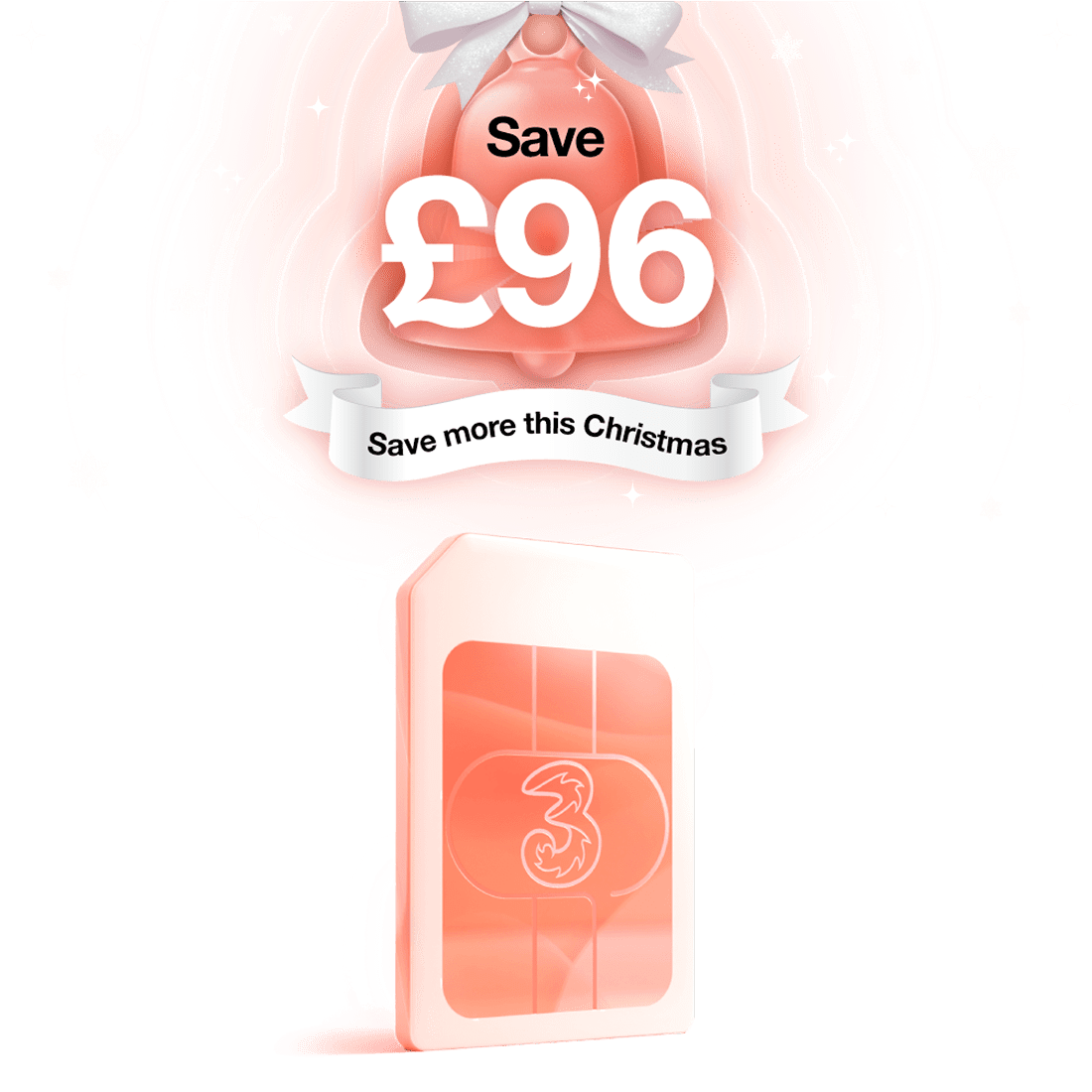 Grab a new SIM for someone special this Christmas, and enjoy unlimited calls and texts, Three+ rewards, and 5G at no extra cost.