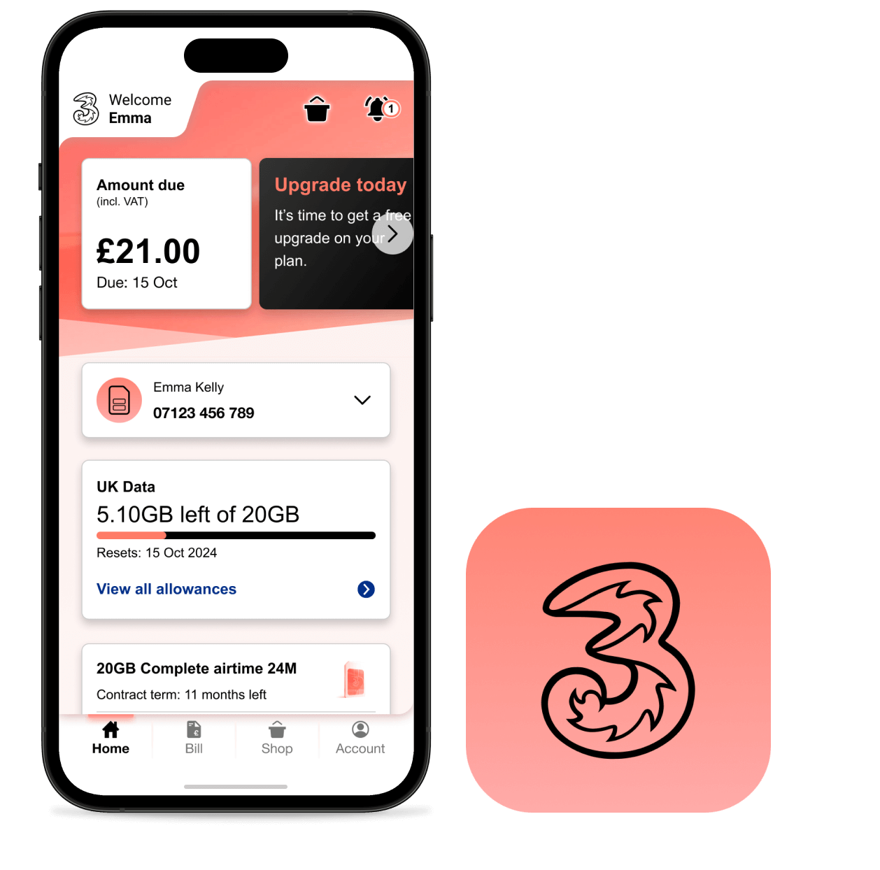 You can buy an Add-on in the Three app or on My3. No data? No problem. The Three app works even when you’ve run out.