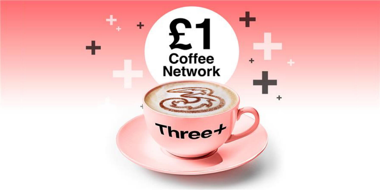 About the £1 coffee network: Everyone loves a coffee, and now you can get rewarded in more places than ever with the launch of our £1 coffee network. Get your favourite barista-made beverage for just £1 at over 1500 participating partners. We’ll be adding more soon, so be sure to check back. One unique link per Three+ customer per week. Link will unlock one single voucher redeemable for a £1 barista-made drink (exclusions apply) at participating venues. See Three+ for full terms.